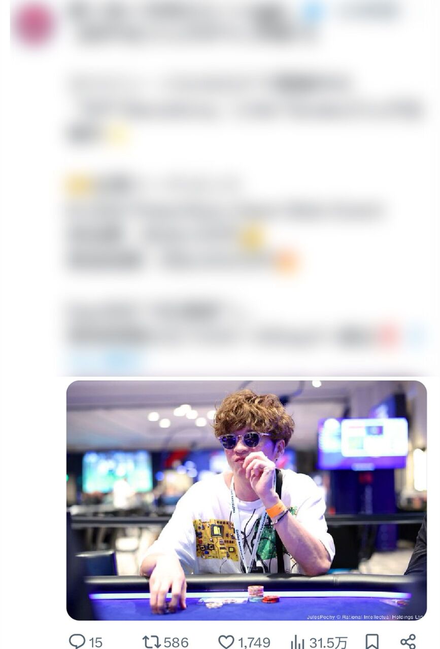 今回、Xに投稿された大会は賞金総額が約8000万円で、田中圭とされる人物はこの大会でも1日目を2位という好成績で通過。2日目に進出を決めたようだ。