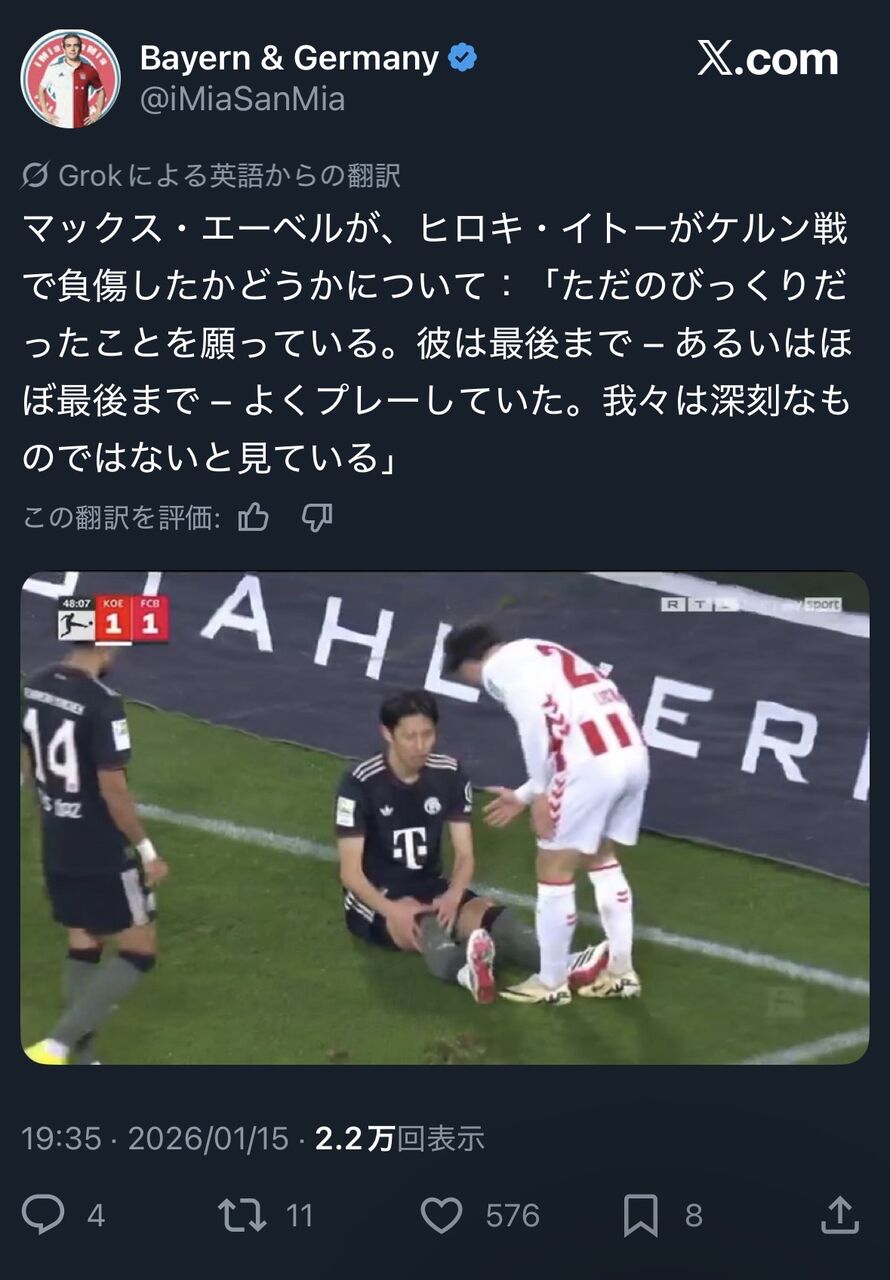 【悲報】バイエルン伊藤洋輝さん…またしても怪我か…