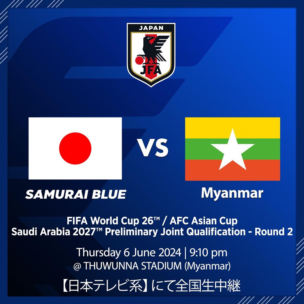 6月の日本代表、アウェイ・ミャンマー代表戦は、日本テレビ系で全国生中継