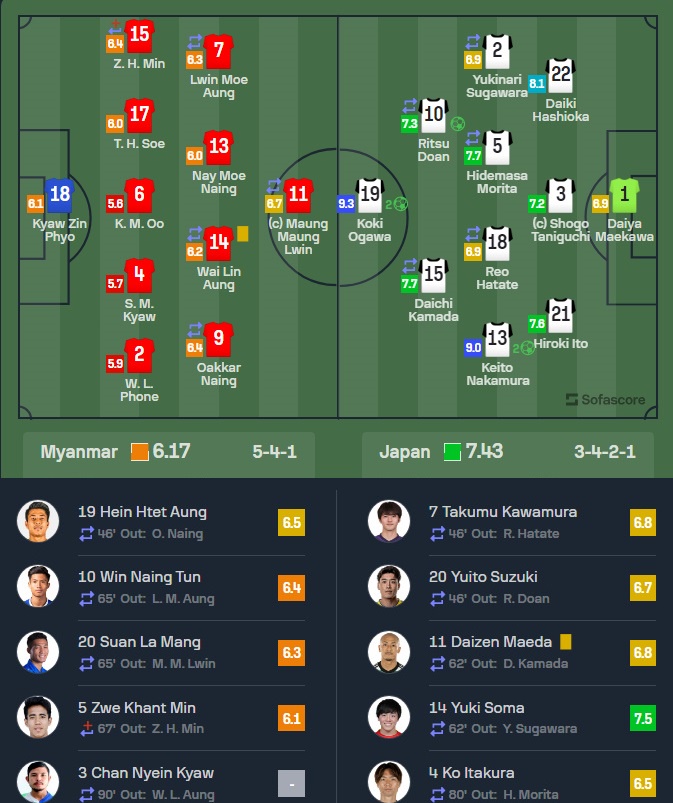 【速報】日本代表、ミャンマー戦の採点wwwwwww