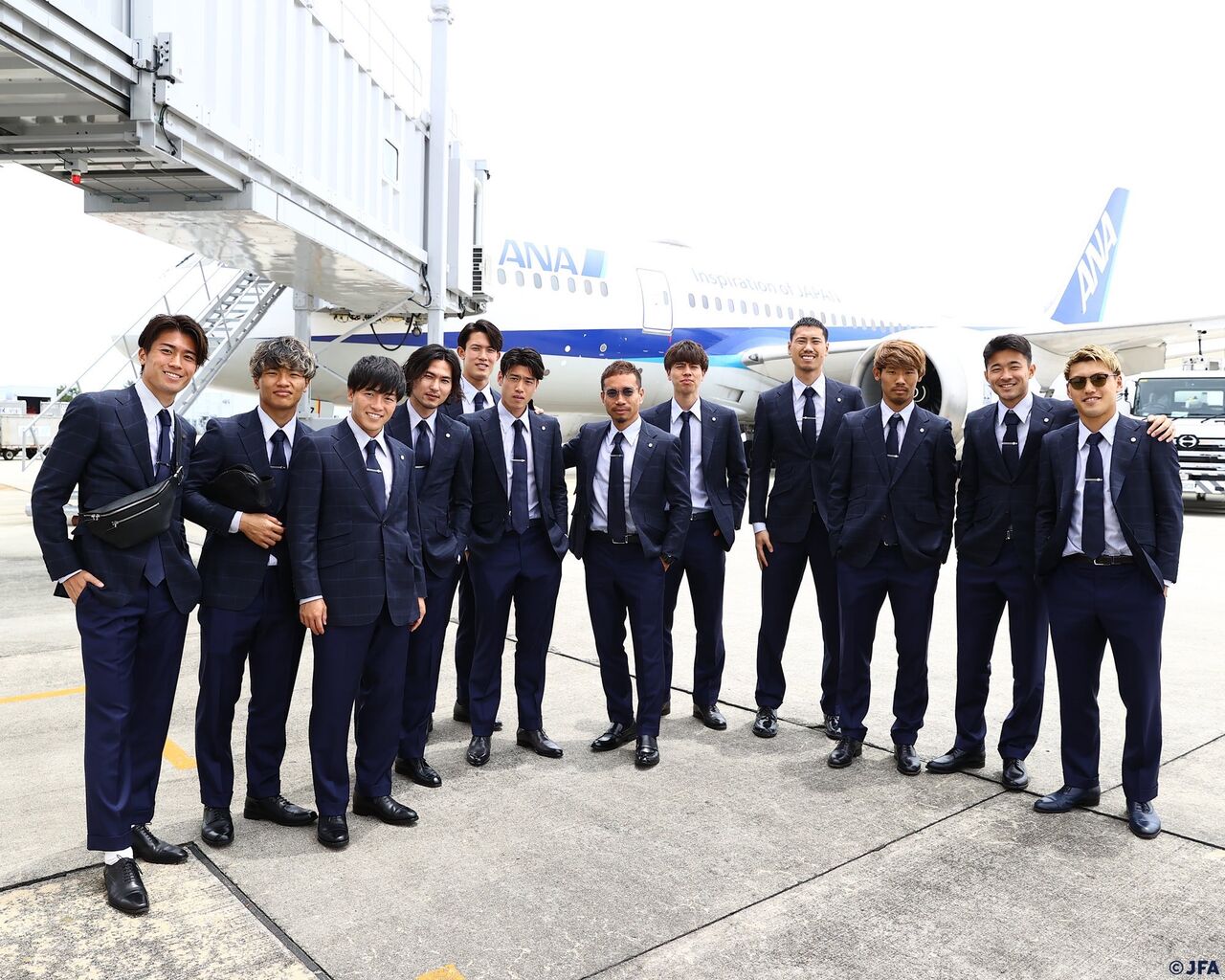 【画像】広島入りしたサッカー日本代表が男前すぎると話題に「真ん中にドン長友」「敬斗が異次元のイケメン」「相馬の新卒感 笑」