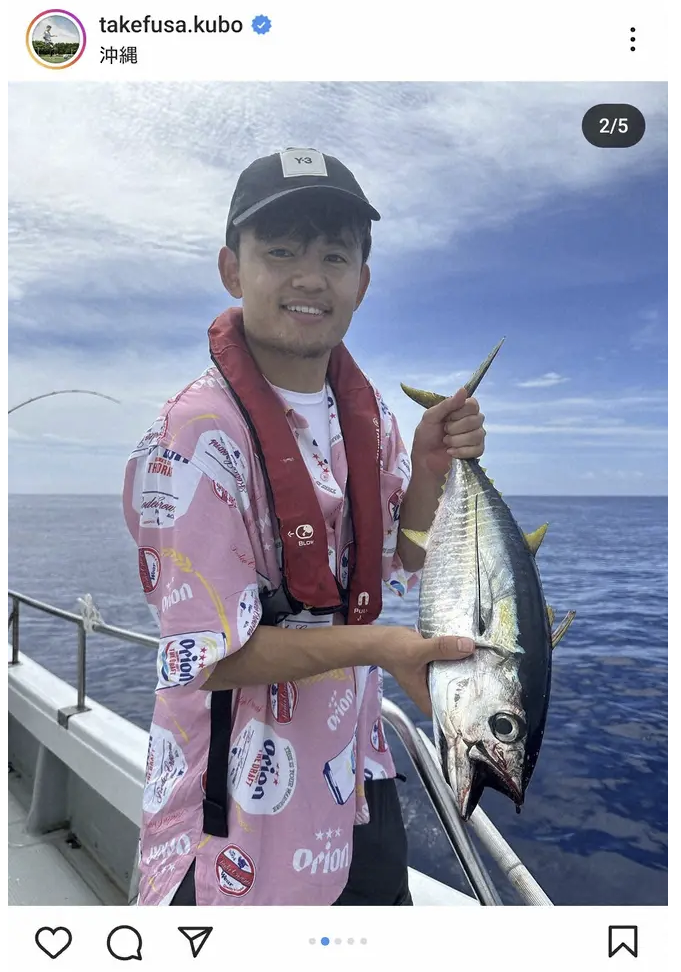 【画像】久保建英「沖縄弾丸釣り旅行」日本代表DFと船釣り満喫 「どハマり」も…まさかの「船酔い」暴露される