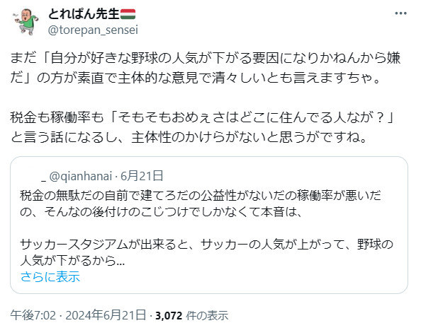 【悲報】サッカーファン「専スタが出来るとサッカー人気が上がるから野球界が嫉妬して邪魔してる」