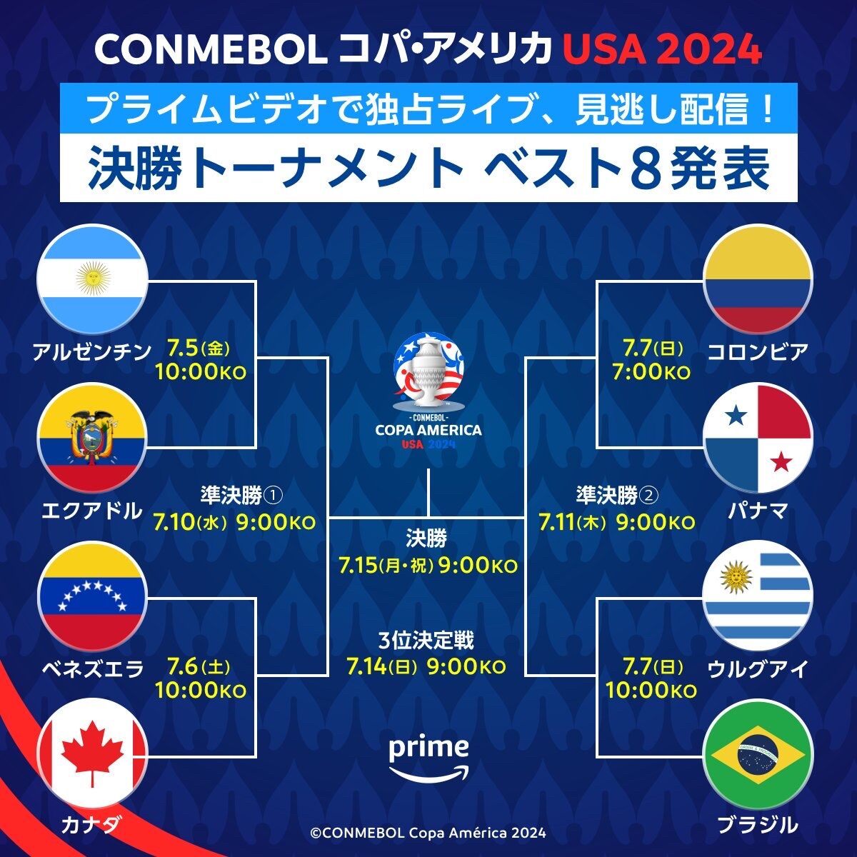 アルゼンチン(A組1位)vsエクアドル(B組2位)ベネズエラ(B組1位)vsカナダ(A組2位)ウルグアイ(C組1位)vsブラジル(D組2位)コロンビア(D組1位)vsパナマ(C組2位)