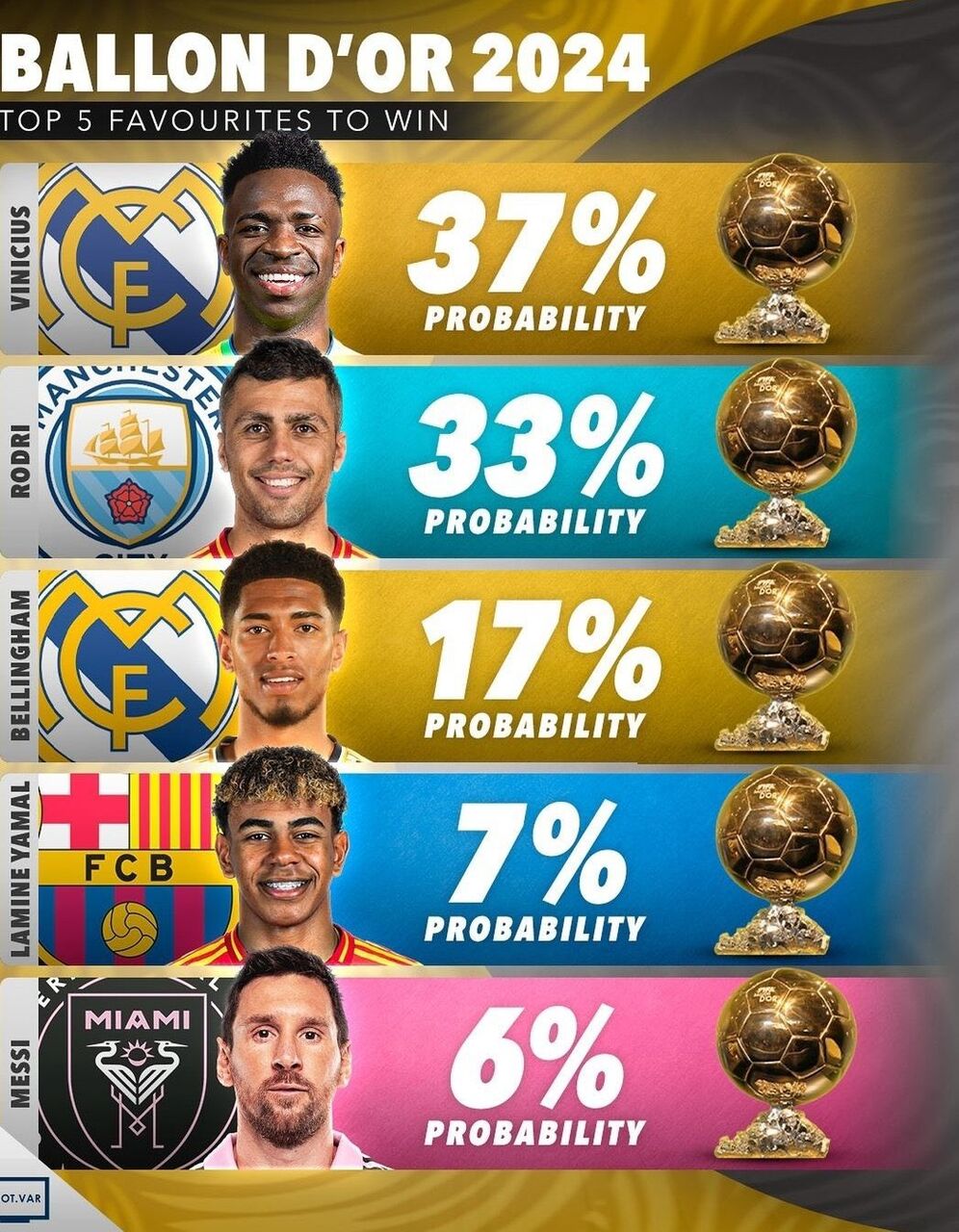 【速報】バロンドール2024、現在のランキング、ロドリが急浮上wwwwwwww
