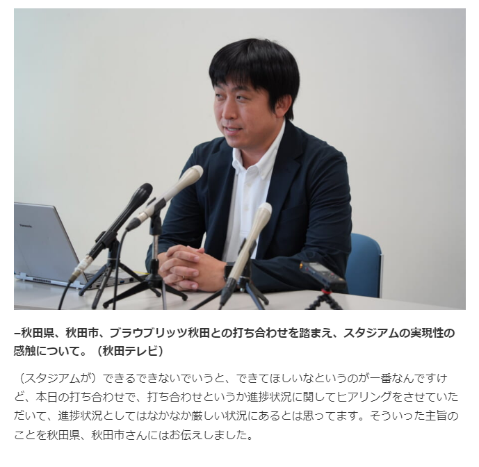 クラブがJリーグへの入会を決めるときには、ホームタウンの自治体の首長さんからも一緒にやっていくってことを表明していただくんですけど、たぶん価値を感じていただいて、秋田市さん、秋田県さんもJクラブを地元にっていうふうに動いてくださったと思います。そのあたりの価値は皆さん感じていただきながら進めてもらってるんじゃないかなとは思ってます。