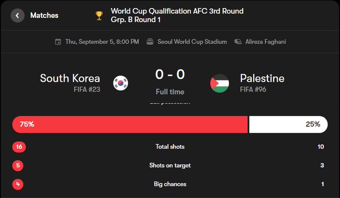 【速報】サッカー韓国代表さん、ホームで格下パレスチナ(96位)相手に勝てないwwwwwwwww スポンサーリンク サッカー 2024/09/06 02:49 【速報】サッカー韓国代表さん、ホームで格下パレスチナ(96位)相手に勝てないwwwwwwwww 1: 名無し@サカサカ10 2024/09/05(木) 22:01:24.02 韓国 0-0 パレスチナ https://www.espn.com/soccer/match/_/gameId/710436 続きを読む