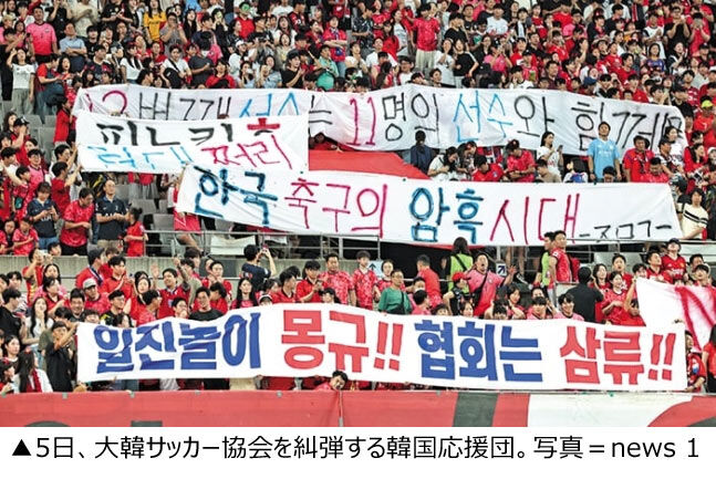【写真】ホーム試合で大韓サッカー協会を糾弾する韓国応援団