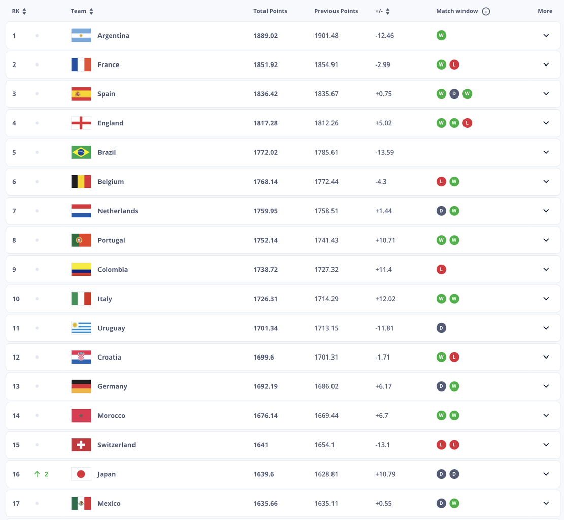FIFAランク 日本は16位にジャンプアップ 森保監督指揮下では最高順位 2011年以来のベスト16