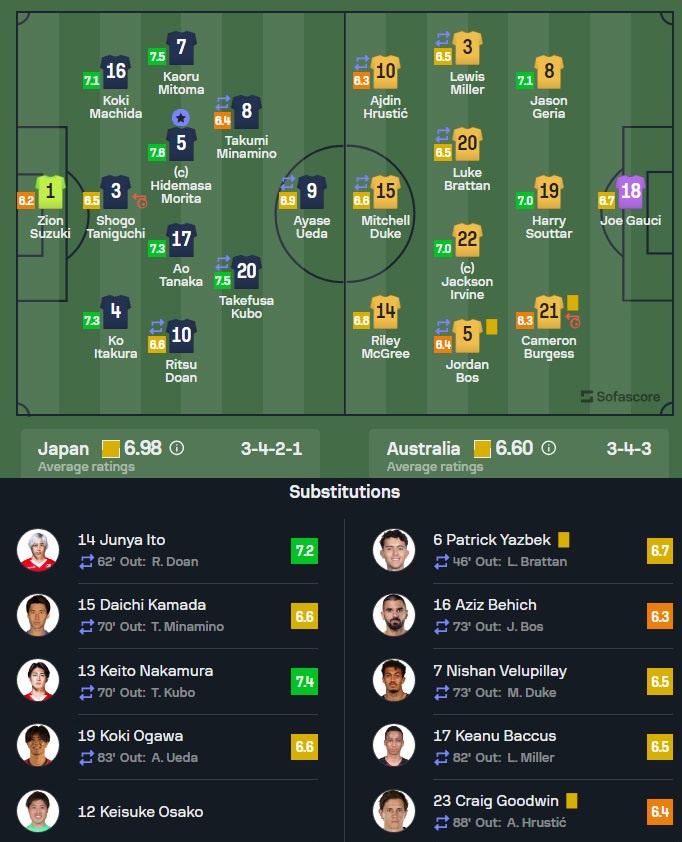 【速報】サッカー日本代表、オーストラリア戦の採点wwwwwwwwwww