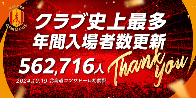 【朗報】名古屋グランパスさん、今季ホーム総観客数がクラブ史上最多を更新wwwwwww