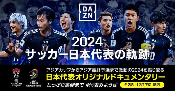 DAZNオリジナルドキュメンタリー『2024 サッカー日本代表の軌跡』(仮題)を12月下旬に無料配信することが決定しております。