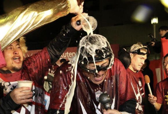 J1神戸の祝勝会はビールかけ1000本が泡に 副会長の臨時ボーナス支給予告にイレブン歓喜