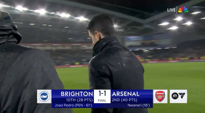 三笘薫が25年初戦でまさかの2試合連続スタメン落ち。62分から途中出場もブライトンは17歳弾のアーセナルと1-1ドロー、8戦未勝利