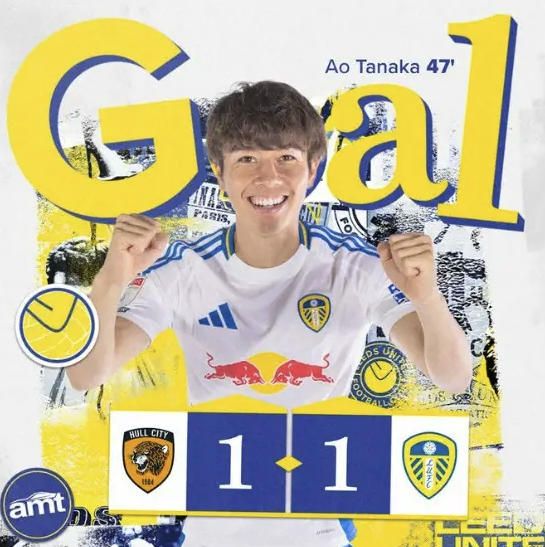 【動画】リーズ田中碧が移籍後初得点!豪快ミドル弾に実況興奮「スーパーゴール!」ファンも歓喜「AOOO!」