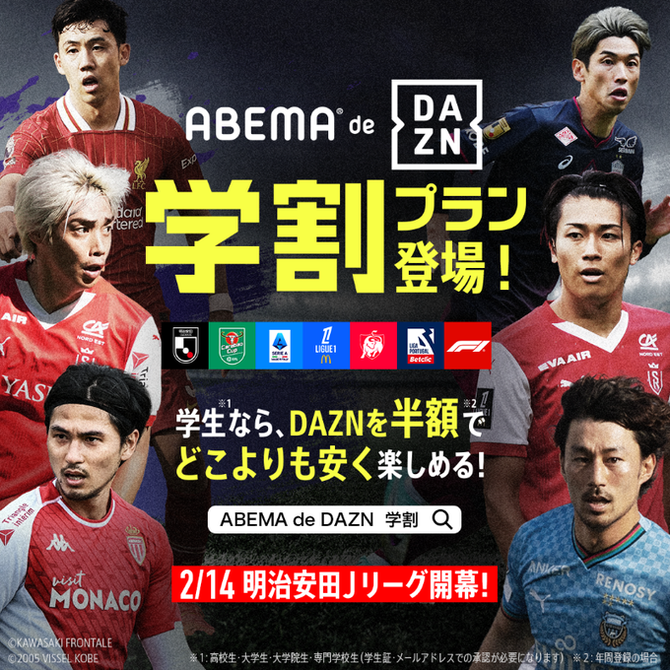 【超速報】DAZN、Abemaでついに学割(半額)導入キターwww