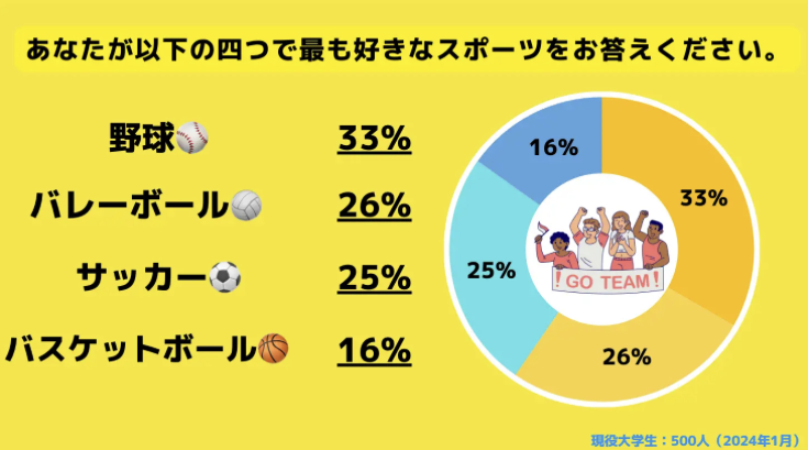 【Z世代のホンネ調査】大学生が最も好きなスポーツ、1位は野球、2位はバレーボール、3位はサッカー。