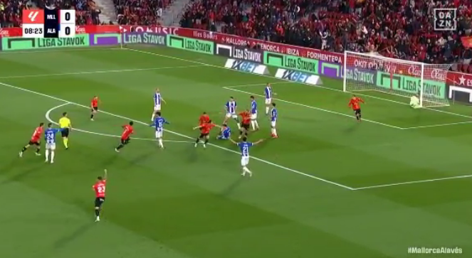 2日のラ・リーガ第26節、本拠地ソン・モッシュでのアラベス戦に臨んだマジョルカ。この試合で3戦連続となる先発出場を果たした浅野は、9分に待望の瞬間を迎えた。