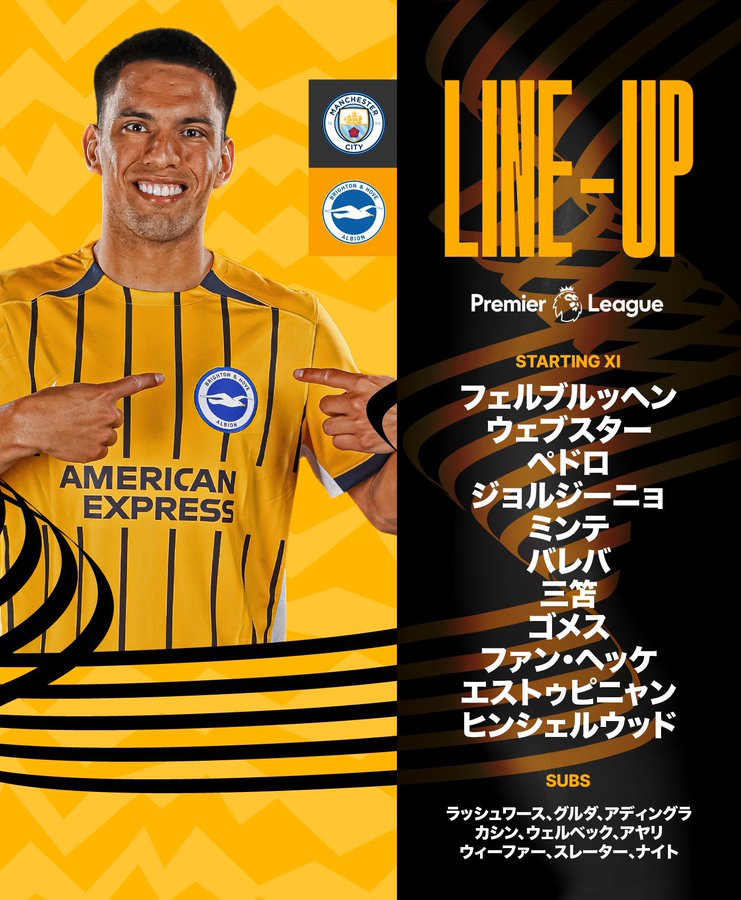 【速報】ブライトン三笘薫さん、シティ戦スタメンキターー!!wwwww