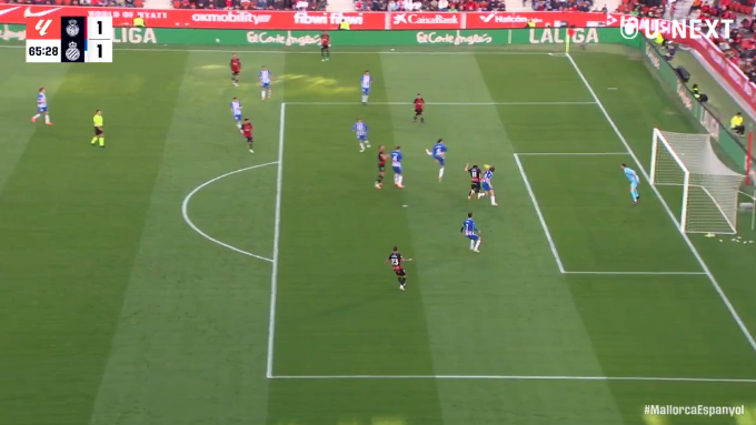 前半はスコアレスのまま終了。迎えた後半、53分にスコアが動いた。エスパニョールのCKで、エクスポシトの送ったクロスからムリキのオウンゴールを誘発している。