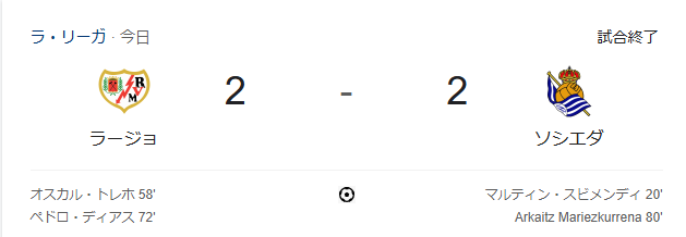 【悲報】久保建英出場のソシエダ、ラージョ戦で同点で3戦未勝利に…