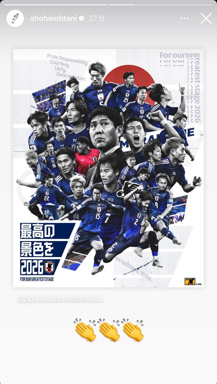 【朗報】大谷翔平さんがサッカー日本代表のW杯出場決定をインスタで祝福