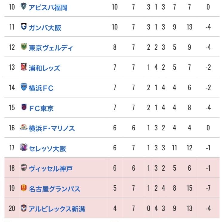 【悲報】Jリーグ順位表、前年度優勝チームが降格争いをしてしまうwwwwwwwww
