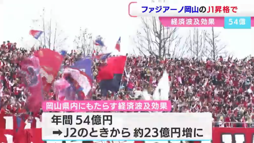 今季からサッカーJ1に初参入したファジアーノ岡山は、第9節終了時点で4勝2分け3敗、J1の20チーム中8位と快進撃を続けている。岡山市にある日本政策投資銀行岡山事務所がJ1昇格に伴う県内への経済波及効果を調べたところ、年間54億円と試算された。J2時代と比べると23億円の増加だ。しかし、同事務所はある事情を理由に「収益機会を逸している」とも指摘している。