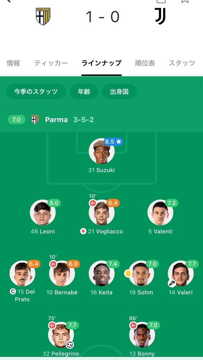 【朗報】パルマGK鈴木彩艶さん、ユーベ相手に完封!7戦ぶり勝利で残留へ大きく前進キターwwwwwww