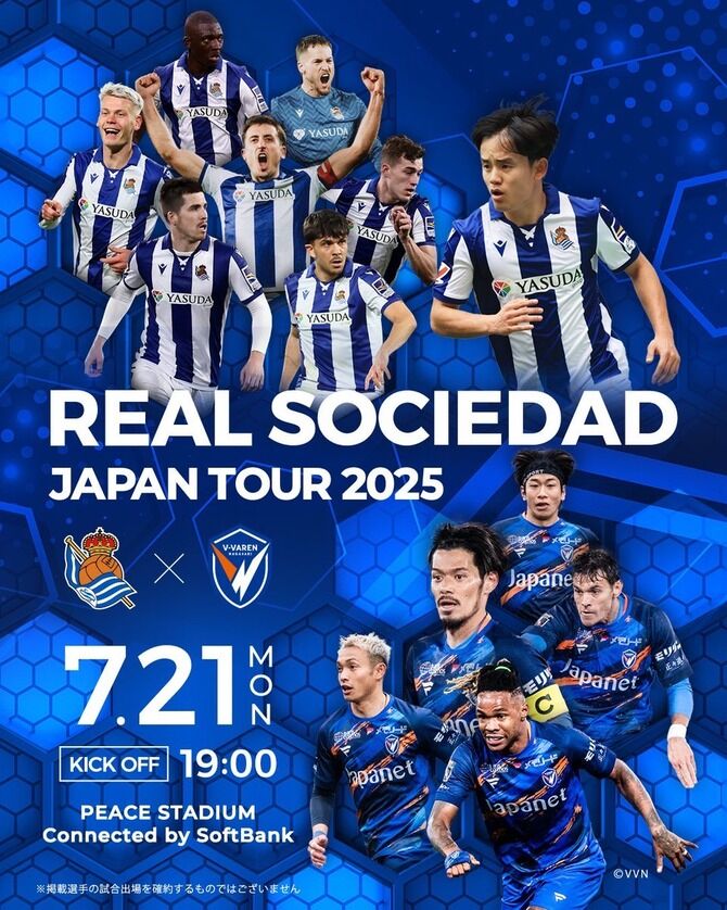 V・ファーレン長崎は、株式会社ヤスダグループ(本社:東京都港区、代表:安田慶祐)などの主催により、『レアル・ソシエダ ジャパンツアー2025』を実施し、7月21日(月・祝)にPEACE STADIUM Connected by SoftBankで親善試合「レアル・ソシエダ vs V・ファーレン長崎」を開催することが決定いたしましたのでお知らせいたします。観戦チケットは、4月30日(水)よりチケットボード(ticket board)を通じて販売いたします。