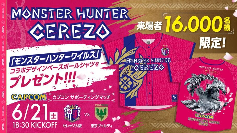 今年も、その人気シャツが帰ってくる。C大阪は、6月21日のJ1第21節の東京ヴェルディ戦で、1万6000人に『モンスターハンターワイルズ』コラボデザインのベースボールシャツをプレゼントすると発表したのだ。