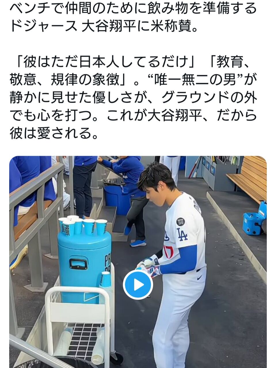 【悲報】日本人さん、大谷がコップに水を入れるだけでホルホルしてしまい全世界から失笑の嵐wwww