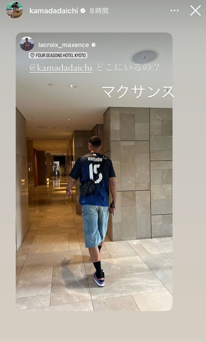 SNSに「(鎌田は)どこにいるの?」というメッセージとともに、鎌田の日本代表ユニフォームを着て、東京の5つ星ホテルを歩く姿を投稿していた。