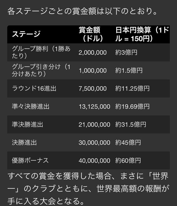 【悲報】クラブW杯の賞金…補強に影響出るレベルでヤバいwwwww