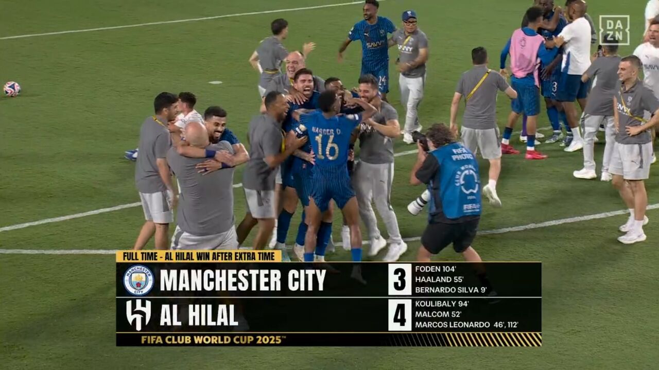 延長戦も激しい撃ち合いとなる。94分、ルベン・ネヴェスの左CKからカリドゥ・クリバリが打点の高いヘディングシュートを叩き込み、アル・ヒラルが勝ち越しに成功。104分にはラヤン・シェルキの絶妙なクロスからフィル・フォーデンが同点弾を叩き込むも、112分にアル・ヒラルがまたしてもリードを奪う。レナン・ロディのアーリークロスにM・サヴィッチが頭で合わせ、GKエデルソンが弾いたこぼれ球をレオナルドが押し込みネットを揺らした。
