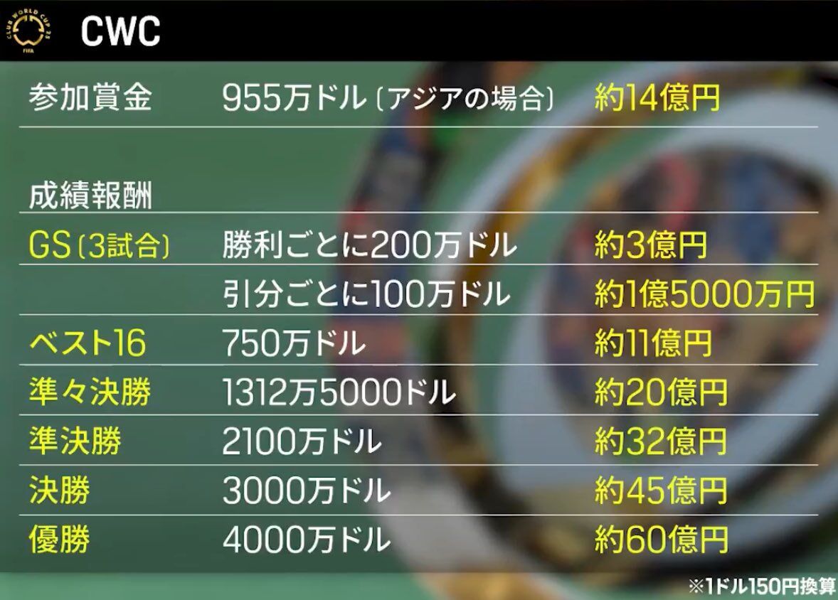 クラブW杯で決勝進出のチェルシーが約160億円の賞金を得たことに驚きの声が多く、「罰金に充てられる」「補強資金になる」との反応も。一方で、大会自体の注目度や採算性を疑問視する声も少なくなかった。