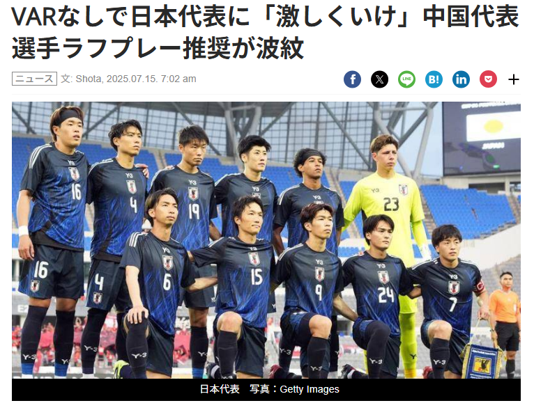 日本代表は7月12日に行われたE-1選手権・決勝大会の第2戦で、中国代表に2-0で勝利。中国のラフプレーを警戒する声が挙がっていたが、中国代表選手による試合前の発言が話題を呼んでいる。