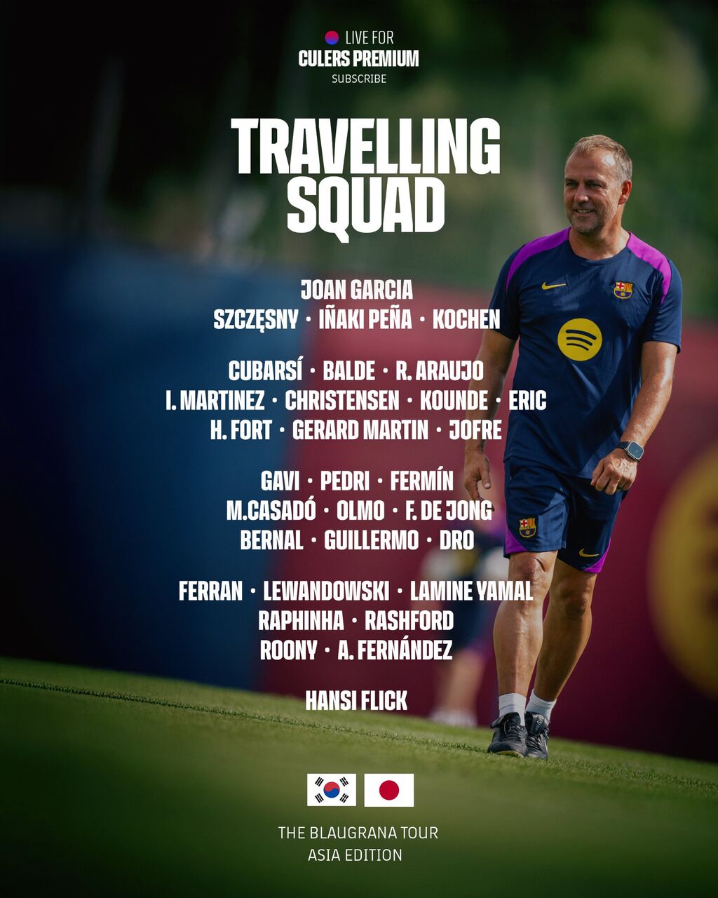 バルセロナは25日、アジアツアーで日本と韓国を訪れるメンバー30名を発表した。