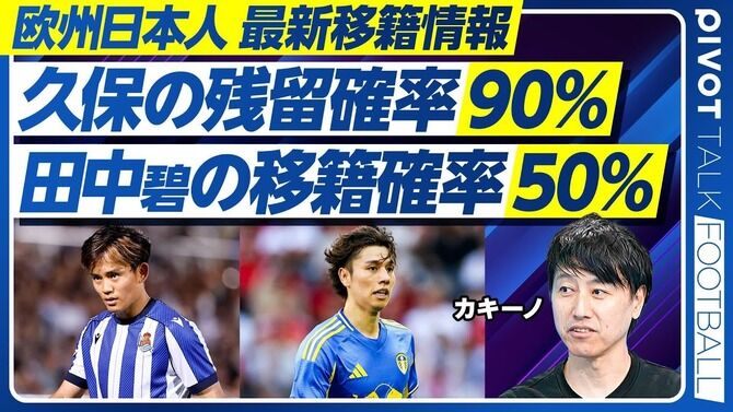 【カキーノの最新移籍情報】田中碧の移籍確率は50%