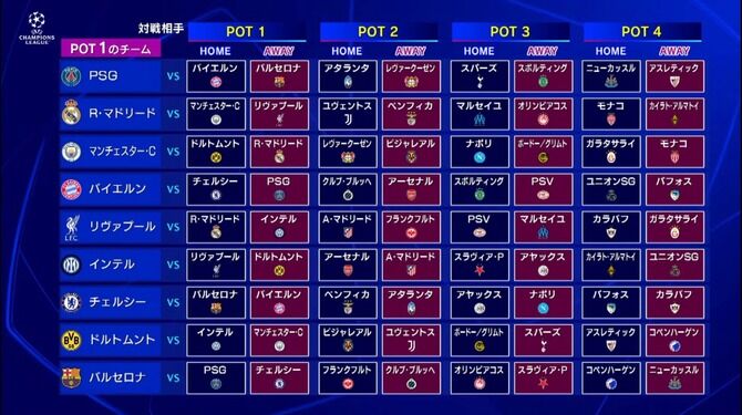 【超速報】UEFAチャンピオンズリーグ、リーグフェーズ組合せ決定wwwwwwww