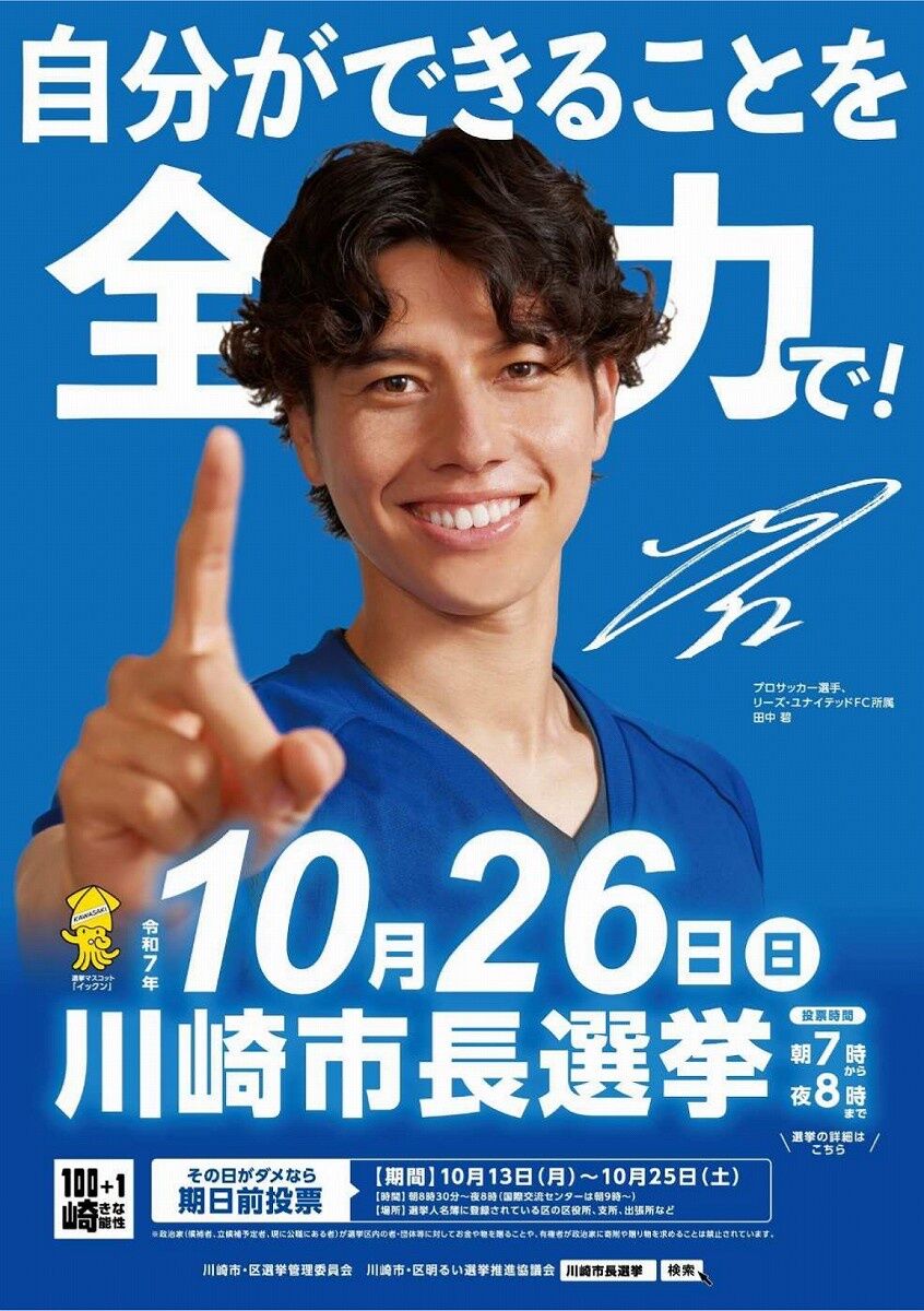 【朗報】田中碧さん、川崎市長選挙のメインビジュアルに決定ww #サッカー日本代表