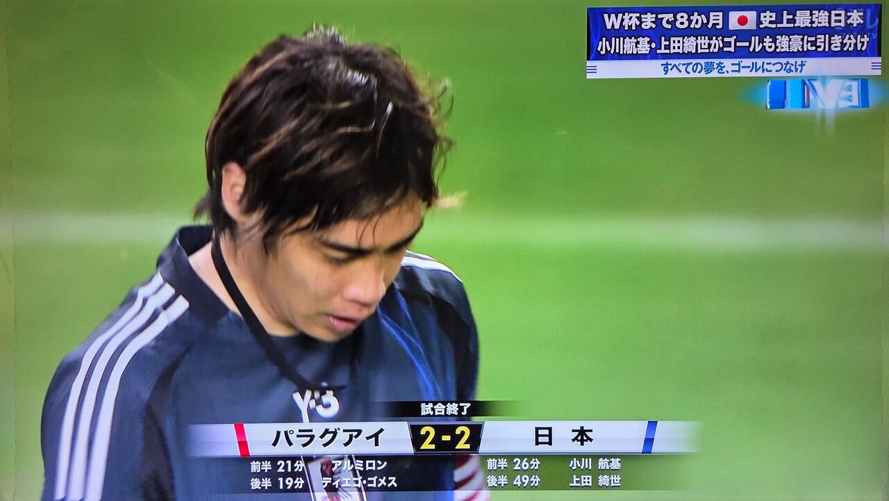 その後、南野と中村家に代えて鎌田大地と代表デビューとなる斉藤光毅を送り出した日本は同点弾を狙う。すると後半AT、出場したばかりの上田綺世が右クロスに合わせて同点弾。辛くも2-2のドローとした。