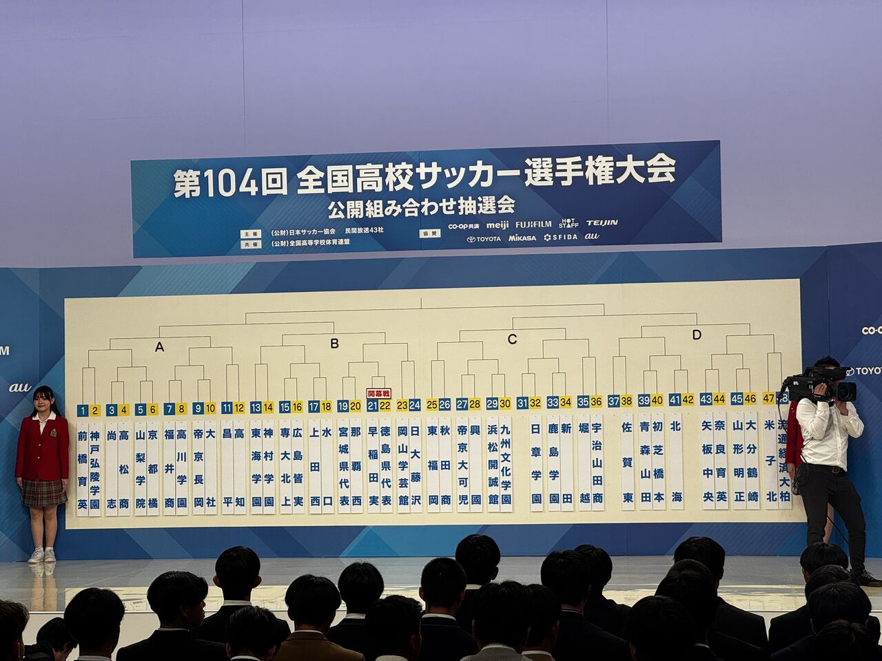 前回王者であり、DF久保遥夢(名古屋グランパス加入内定)を筆頭に、Jクラブ内定者3名を擁する前橋育英(群馬)の初戦は、神戸弘陵(兵庫)に決定した。そのほか、プレミアリーグEASTで上位につける青森山田(青森)は初芝橋本(和歌山)と1回戦で、流通経済大柏(千葉)は米子北(鳥取)と2回戦で、それぞれ対戦。また開幕戦は、早稲田実(東京B)と徳島県代表(11月22日に決定)が激突する。