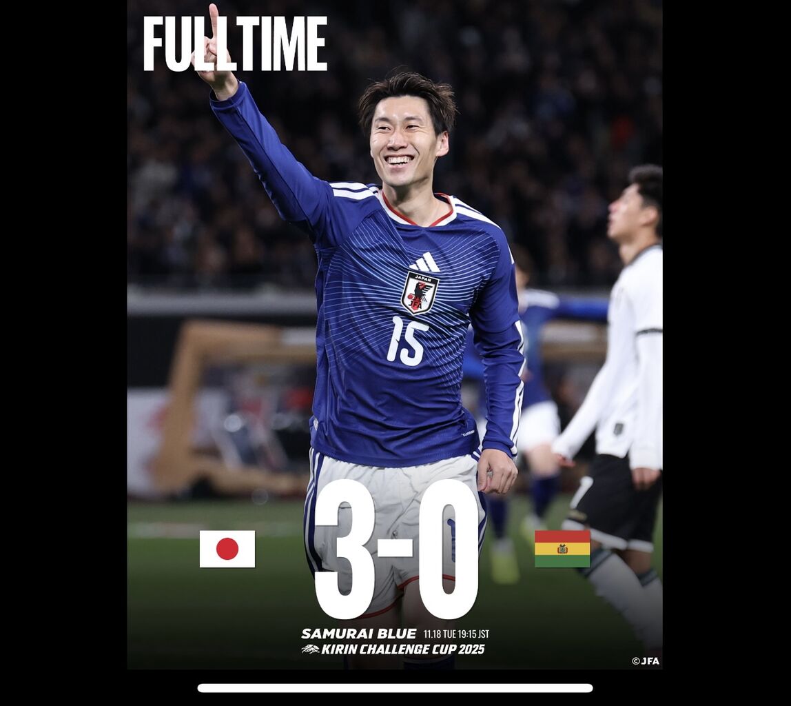 【速報】サッカー日本代表、ボリビア代表を3ー0で撃破wwwwww スポンサーリンク サッカー 2025/11/19 13:10 【速報】サッカー日本代表、ボリビア代表を3ー0で撃破wwwwww 1: 名無し@サカサカ10 2025/11/18(火) 22:42 日本代表がボリビア代表と対戦し3ー0で快勝! 前半に鎌田大地が先制ゴール後半町野修斗と中村敬斗が追加点を決めて試合終了。