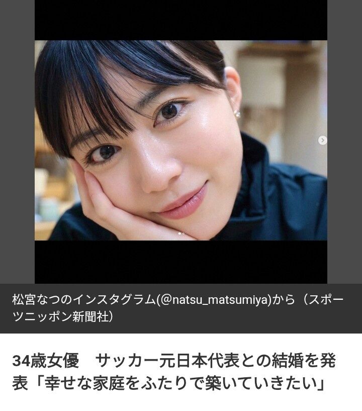 女優・松宮なつ(34)が26日、公式SNSを更新。J1岡山に所属するDF立田悠悟(27)と結婚したことを報告した。