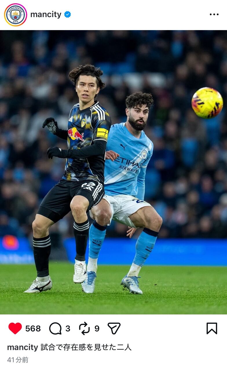 【朗報】田中碧さん、マンシティ公式に褒められてしまうwwwwwwww