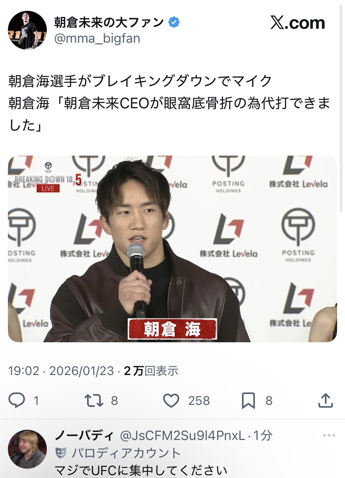 466: 実況厳禁@名無しの格闘家 (ワッチョイ 2b91-qFKd) 2026/01/23(金) 19:46:47.25 ID:uQbNfXEM0