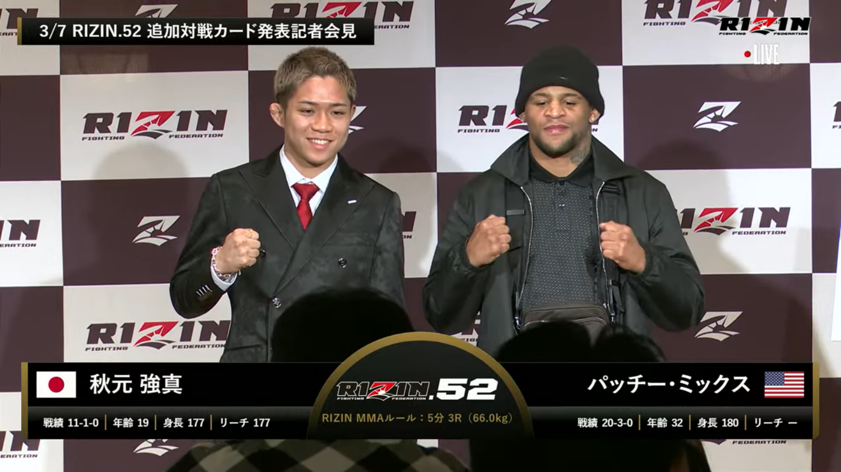 秋元強真×ミックス決定 3月フェザーで対決
