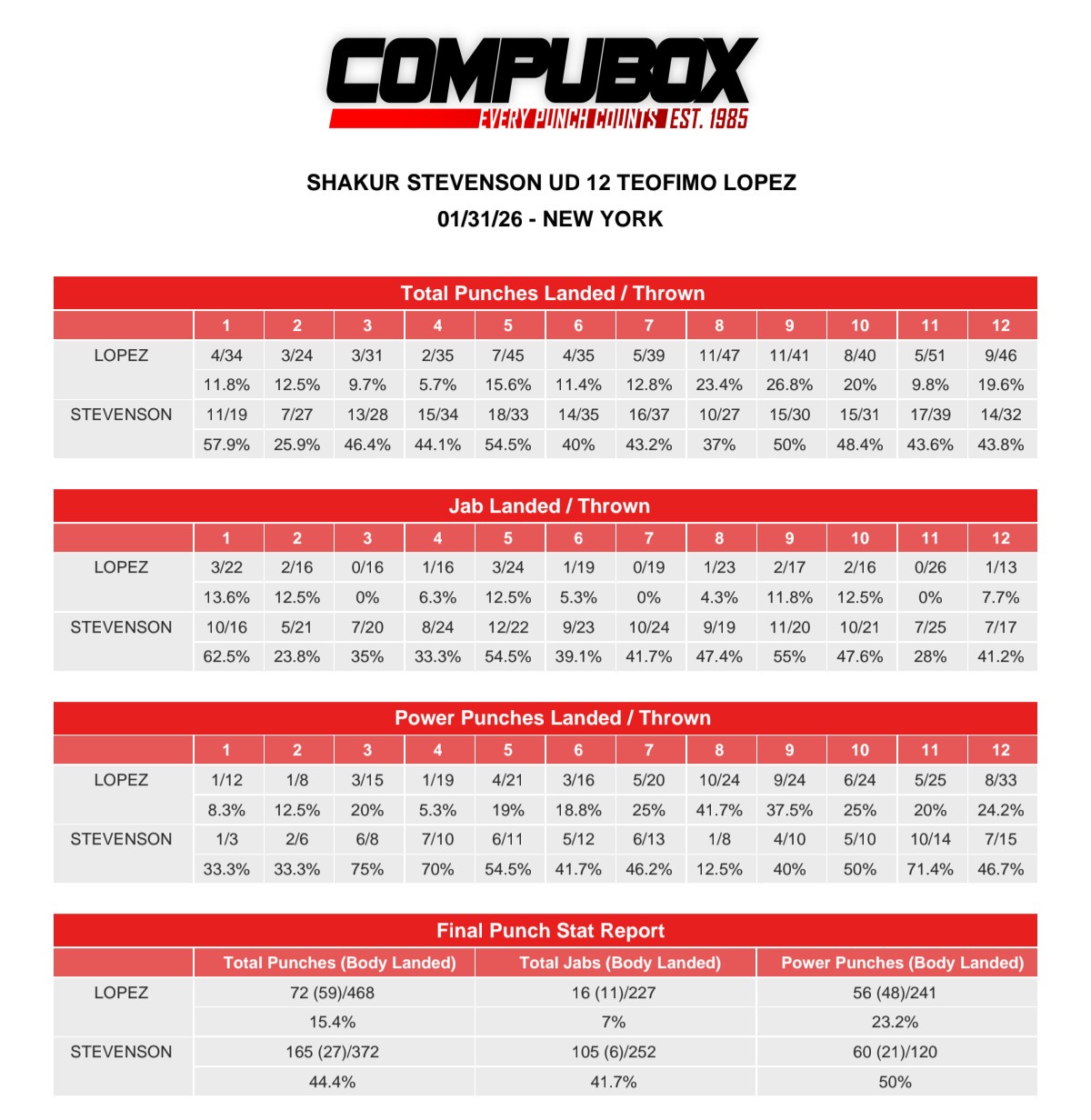 シャクールテオフィモ戦が、シャクール総パンチ数372でヒットが165、テオフィモが総パンチ数468でヒットが72か。