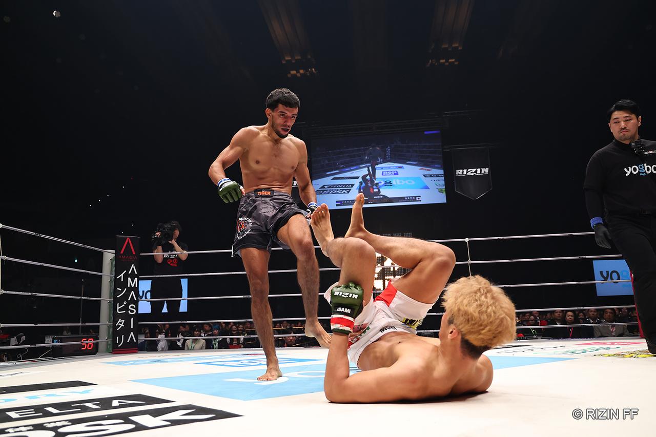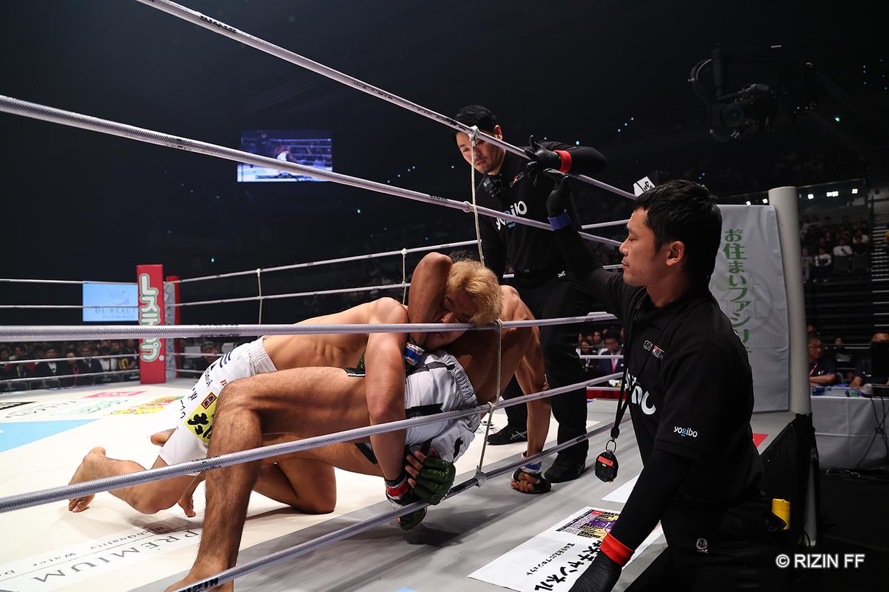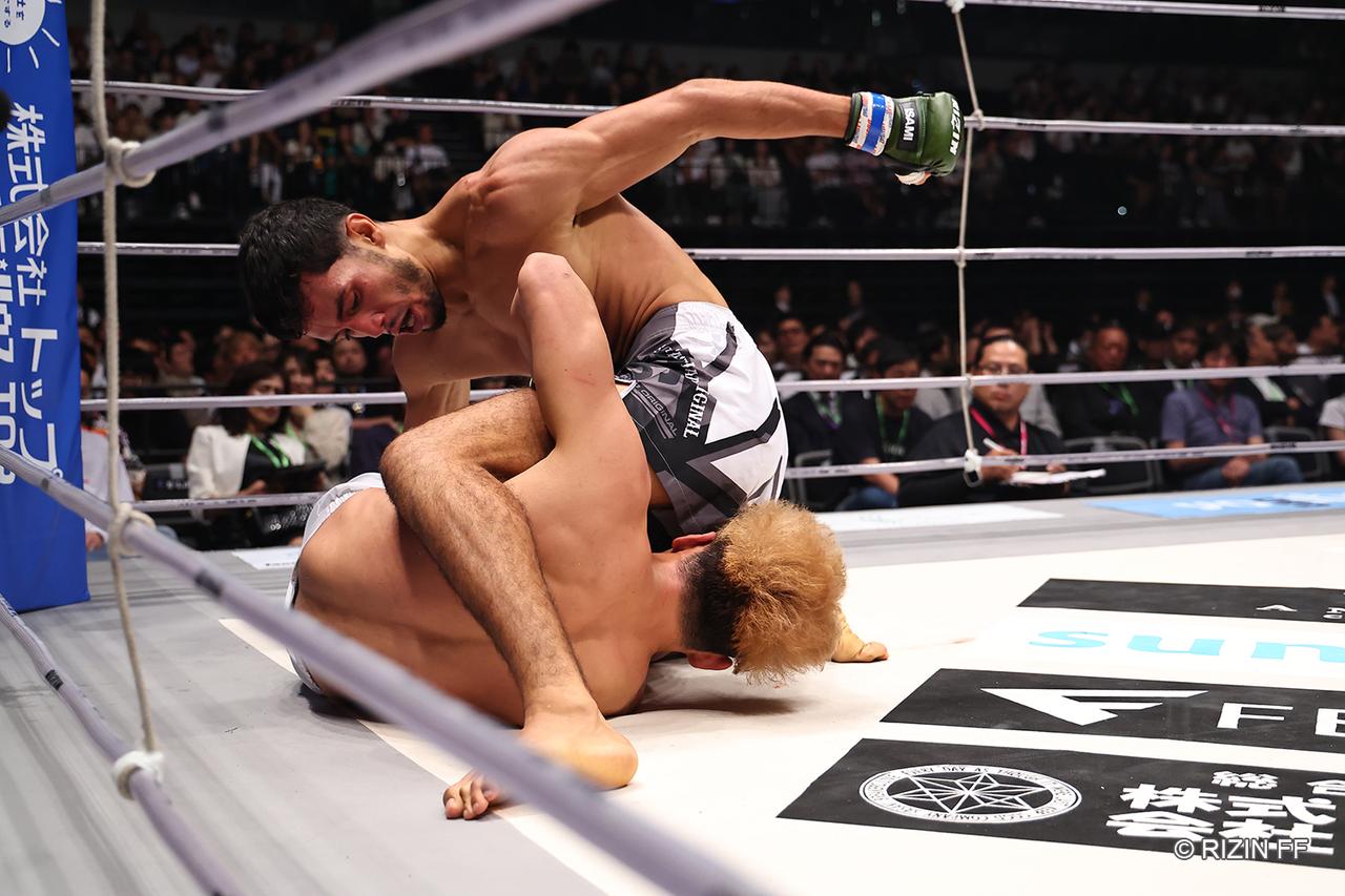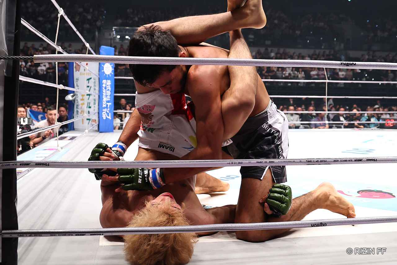 ノジモフ vs 山本 ノジモフが山本を折り畳んでパウンドでボコボコKO 山本は引き込んで自ら不利なポジションになる